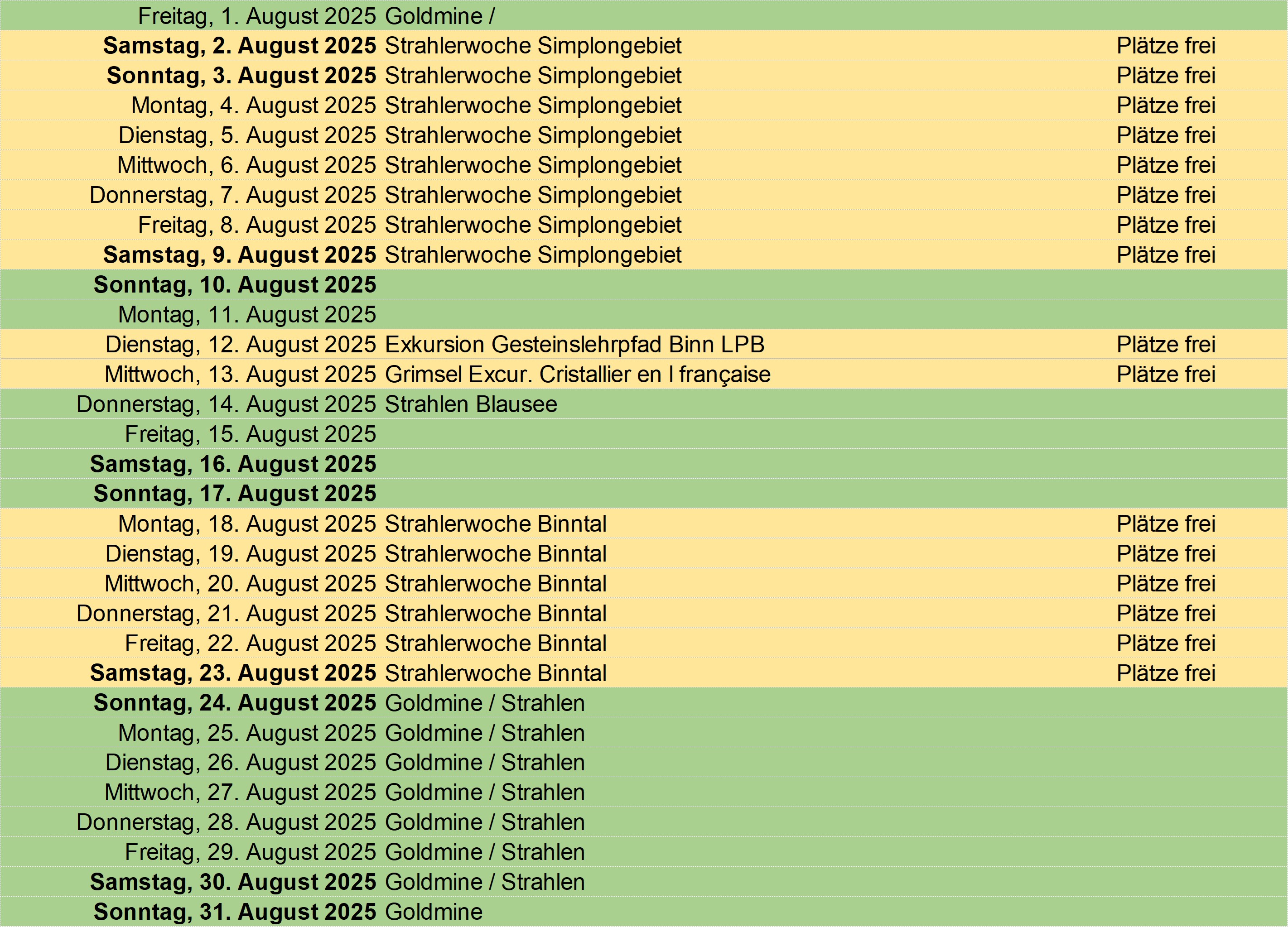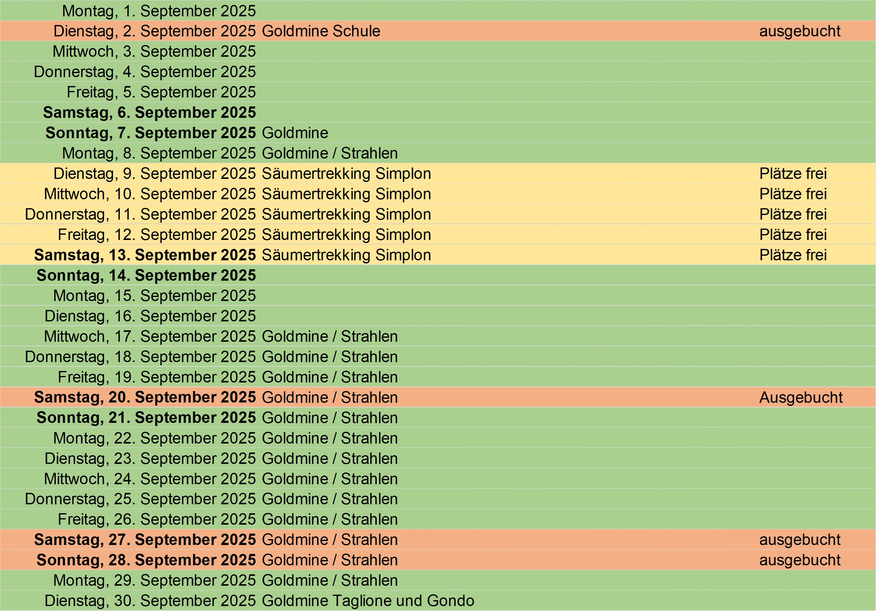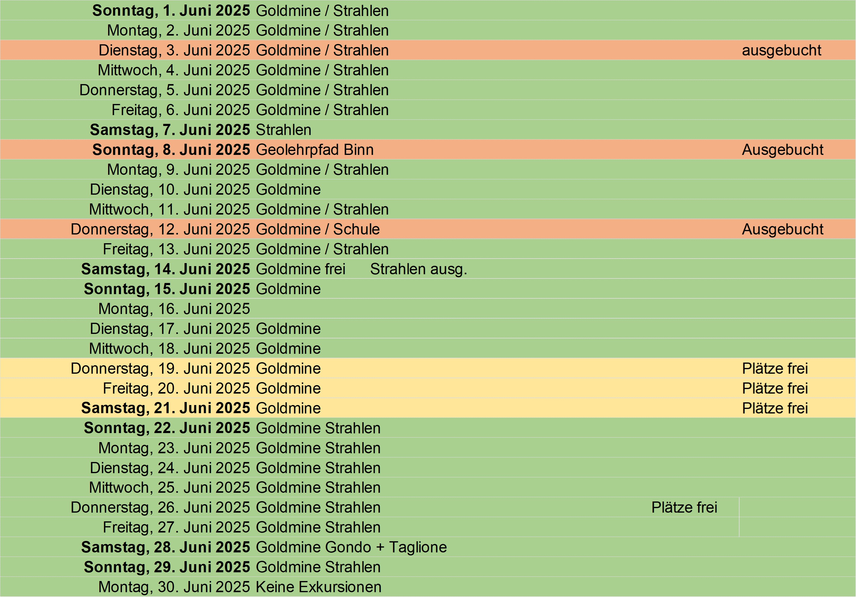 Update: 29.04.2025 Grün: buchen oder eigenen Event reservieren