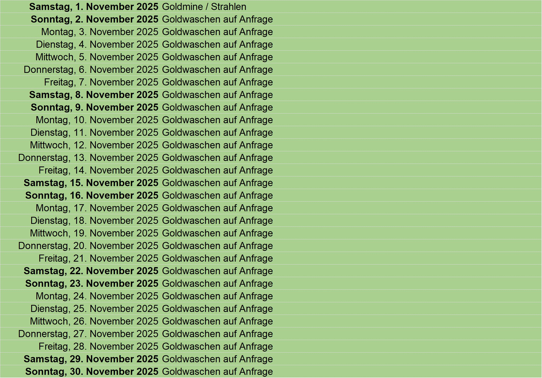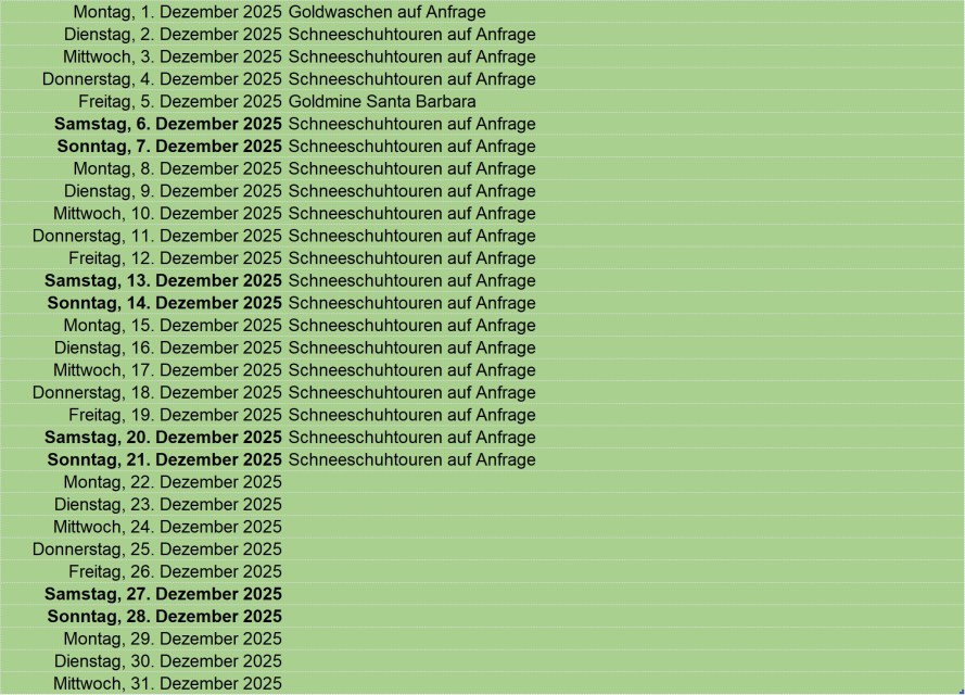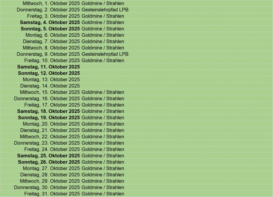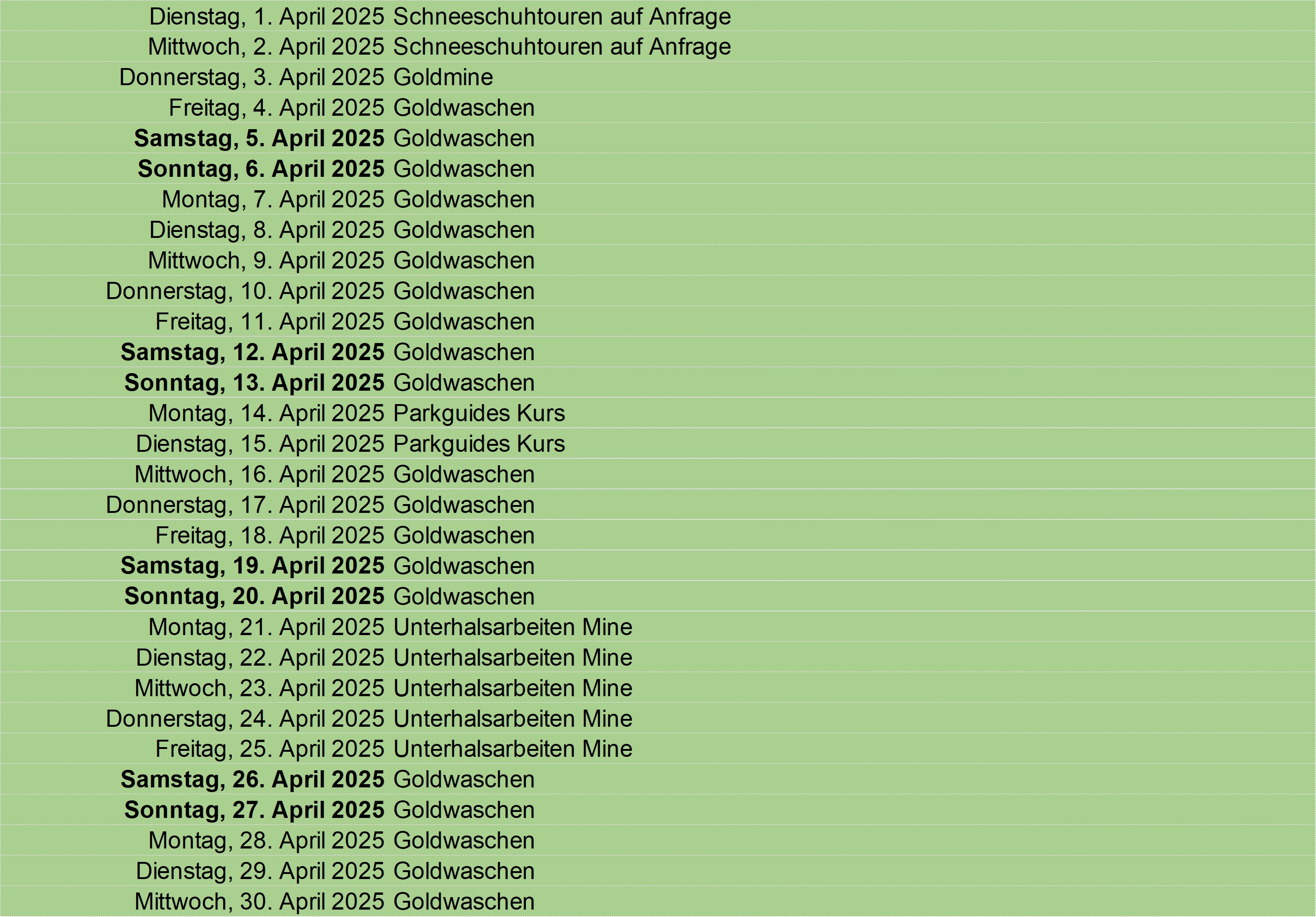 Update: 29.04.2025 Grün: buchen oder eigenen Event reservieren